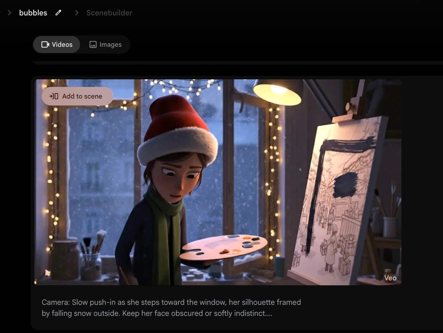 I used Whisk to generate static “Style Frames.” This bypassed the AI’s tendency to hallucinate realistic faces when a painterly, “animated” aesthetic was required for the story.