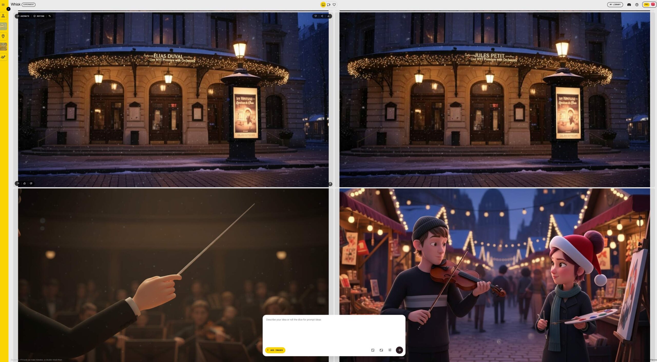 Before committing tokens to animation in Flow, I utilized Whisk to perform iterative style hardening. This allowed for rapid, low stakes iteration. By “locking in” the visual identity here, I avoided the high cost of “experimenting” within Flow. Ensuring that the 20-token animation spend was applied to a high-probability asset rather than a blind guess.